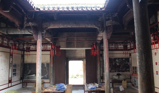 建筑简介:"该建筑坐北朝南,砖木结构,四合院式。前堂、正堂均为抬梁式、硬山顶。正堂上方挂有木匾,额题“养和堂”。建筑布局完整,结构稳固,前堂、正堂内堆放农具等杂物。但牛腿及梁架等木构件雕刻精美,具有一定的艺术、历史价值。目前作为村文化礼堂功能使用。该建筑形制典型,它是一处民间宗族文化形态的宿影,对研究地方祠堂文化有一定的历史与艺术价值。"