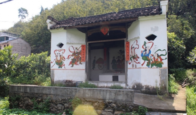 建筑简介:"该建筑坐东南朝西北,砖木结构,抬梁式,硬山顶。现神像不存,所祀何神不明。建筑布局基本完整,结构不够稳固,梁架部分霉烂。目前暂无使用功能。该建筑形制典型,它是一处民间宗教信仰文化形态的宿影,对研究地方宗教文化有一定的历史与艺术价值。"
