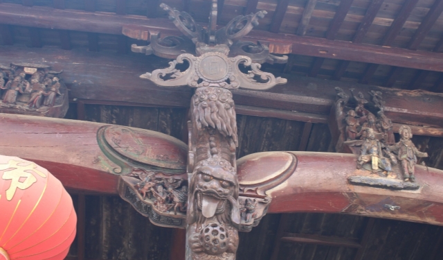 建筑简介:"该建筑坐北朝南,砖木结构,二进院落,前堂内上方挂有一匾,额题“荣阳世家”,外上方挂有一匾额题“郑氏宗祠”。抬梁式,硬山顶。正堂中挂有三快匾额题分别为“贡院”“翰林”“彝伦堂” 。许多梁架上画有各种人物的生活画面。建筑布局基本完整,结构稳固。目前作为东汉村宗祠、居家养老服务站等功能使用。该建筑形制典型,它是一处民间宗族文化形态的宿影,对研究地方祠堂文化有一定的历史与艺术价值"