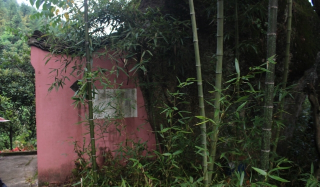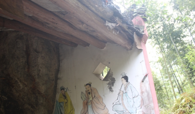 建筑简介:"该建筑坐北朝南,水泥砖混结构,单间,面宽 3.2米,进深3 米,硬山顶。庙的后身紧靠一块巨石,庙内建有一拜台,台正中间放有何仙姑神像,庙的东西两侧墙壁画有七位神仙图像。该建筑布局完整,结构够稳,内部被大树树干穿越,体现了建筑、自然相互交融的景象。该建筑形制典型,它是一处民间宗教信仰文化形态的宿影,对研究地方宗教文化有一定的历史与艺术价值,亦展现了建筑与自然共生的景象。"