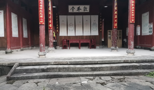 建筑简介:位于笔峰自然村 92 号民宅西侧 10米处,此宗祠始建于元朝,现在保留是清代重修建筑,三进二天井,坐北朝南,两侧马头山墙,硬山顶。前堂为砖木结构,面宽五间15.2米,进深 5.1米,抬梁式:正堂面宽五间 15.2米,进深7.6米,抬梁式,硬山顶,后堂为二层砖木结构,面宽五间 15.2米,进深5米,抬梁式 。