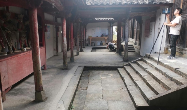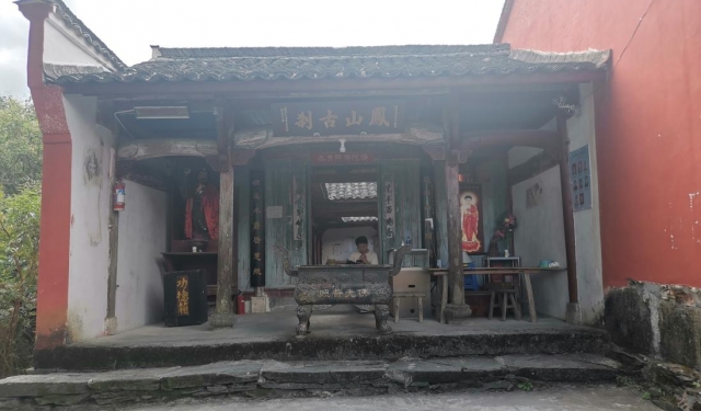 建筑简介:位于威坪镇岭脚村东部凤凰山。据村民方凤海介绍该庙建于清代,坐西朝东,砖木结构,三进两轴四天井,建筑均为硬山顶,后堂为二层。正堂面宽六间 16 米,进深三间5.6米,穿斗式,,后堂面宽六间 16 米,进深三间3.4米,穿斗式,硬山顶。后堂佛庙有雕像四尊,正堂佛庙木雕像有九尊,前堂木雕像六尊,结构完整。