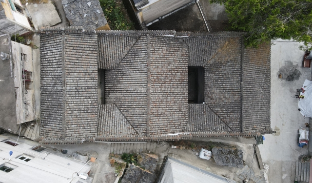 坐东北朝西南,局部二层砖木结构,两进一天井,两侧设马头山墙,硬山顶。