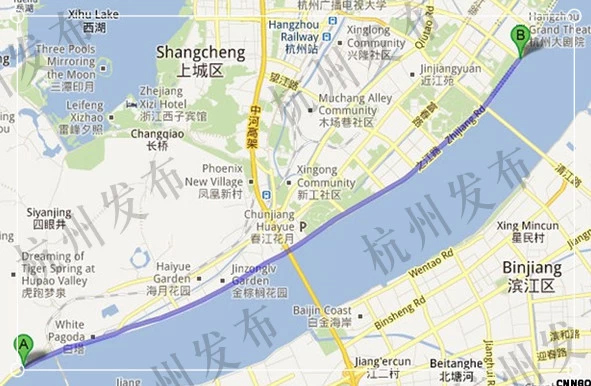 起点: “六和塔”公共自行车租赁服务点,靠之江路和钱塘江大桥