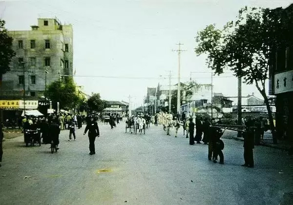 荐桥直街,从佑圣观路、丰和巷口到三元坊“兴业银行”止,最远处的建筑就是老底子的“兴业银行”。