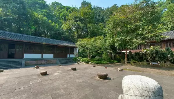 玛瑙寺旧址,位于西湖风景名胜区北山路葛岭路17号,坐北朝南,背依葛岭,面向西湖,清末重修的寺院格局尚存。2004年实施的北山街历史文化街区保护工程中,对现有历史建筑予以维修加固,历史遗迹原状保护,其他参照《清代园林图录》玛瑙寺图,修复一亭、一阁、廊宇和后山门。现已开设为连横纪念馆。